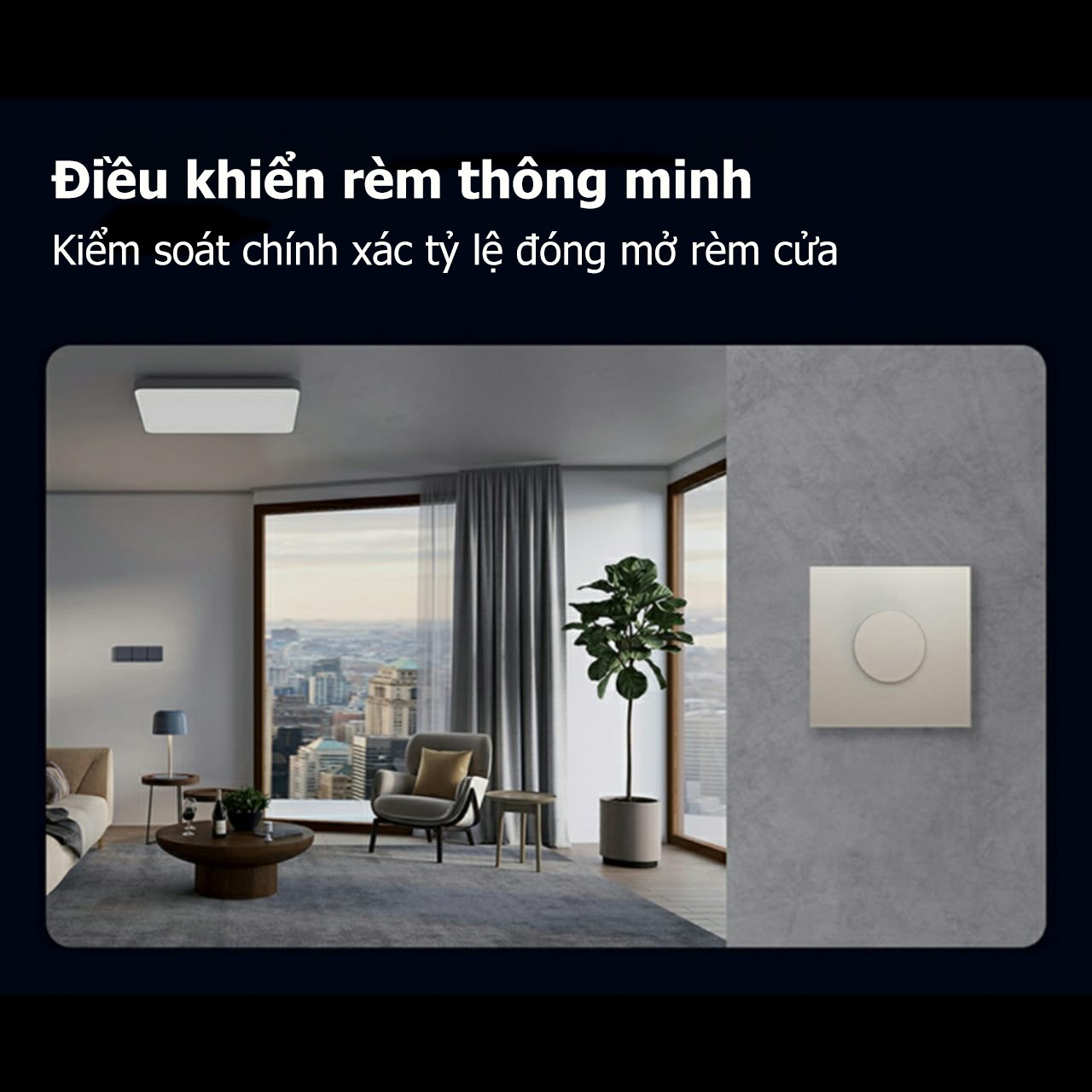 - Xoay để mở/ đóng rèm theo phần trăm