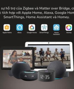 Tích Hợp Zigbee và Hỗ Trợ Matter over Bridge: Với Matter over Bridge, công tắc dễ dàng kết nối với các nền tảng bên thứ ba như Apple Home, Amazon Alexa, Google Home, Samsung SmartThings, Home Assistant và Homey. Bên cạnh đó, Zigbee giúp công tắc hoạt động như một bộ khuếch đại tín hiệu, đảm bảo kết nối ổn định giữa các thiết bị và giảm thiểu điện năng tiêu thụ, góp phần tiết kiệm chi phí điện năng.