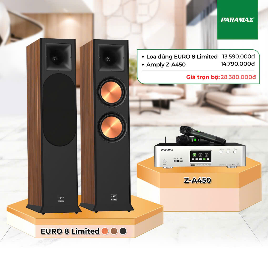 - Paramax Euro 8 Luxury sang trọng và sự hoàn hảo cho mọi không gian giải trí thích hợp karaoke, nghe nhạc,…