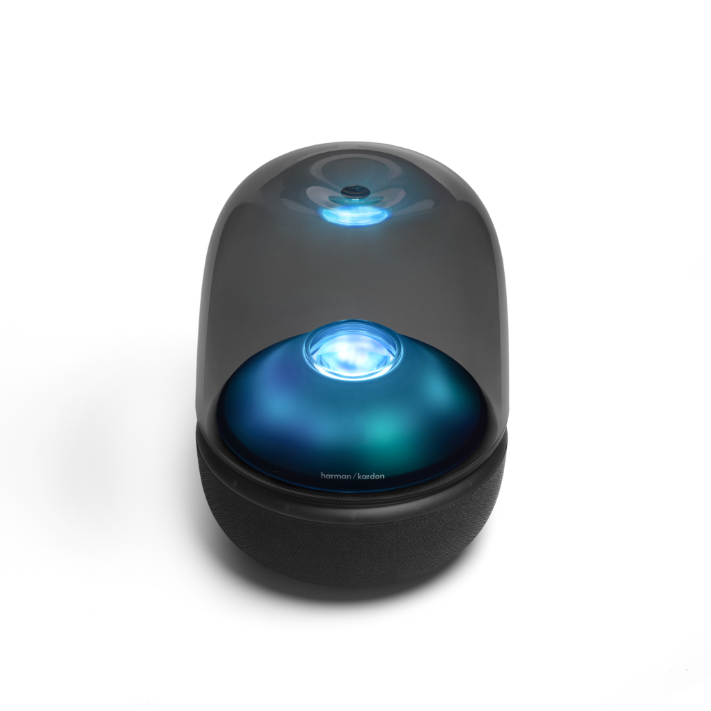 Harman Kardon Aura Studio 5 là một bản hoà ca kết hợp âm thanh và ánh sáng một cách liền mạch, biến âm nhạc của bạn thành trải nghiệm nghe, nhìn và lắng đọng. Khi bạn phát nhạc yêu thích qua Bluetooth, ánh sáng xung quanh sẽ tỏa ra từ vòm trong suốt đặc trưng, biến đổi không gian xung quanh theo bất kỳ cách nào bạn muốn. Với nhiều tùy chọn ánh sáng, hãy đắm mình trong bầu không khí êm dịu với ánh đèn màu xanh ngọc lam dịu nhẹ, gợn sóng nhẹ nhàng như mặt nước. Hoặc tạo không khí ấm áp, lung linh với ánh lửa bập bùng cho những buổi tối tràn ngập tiếng cười bên bạn bè. Trong khi đó, công nghệ Âm trường bất biến (Constant Sound Field) lấp đầy mọi ngóc ngách căn phòng của bạn bằng âm thanh giàu nhạc tính với độ chi tiết cao. Dù bạn thiết lập bầu không khí như thế nào, Aura Studio 5 cũng sẽ biến mọi khoảnh khắc trở nên khó quên.