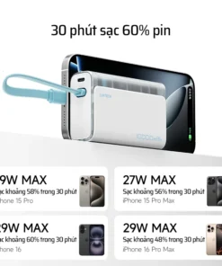 - Dung lượng 10.000mAh – Đủ năng lượng cho nhiều lần sạc điện thoại trong ngày.