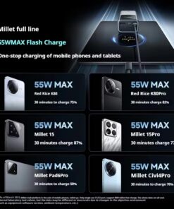 - Sạc siêu nhanh 55W hỗ trợ PD/PPS/QC/Mi Turbo, tương thích laptop, smartphone, tablet.