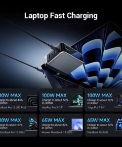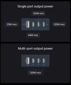 Công suất siêu mạnh 120W với công nghệ GaN – Sạc nhanh laptop, smartphone và tablet với hiệu suất cao và tản nhiệt thấp.