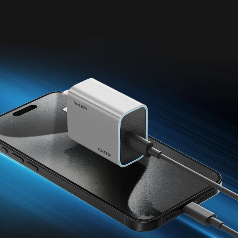 Công nghệ GaN3 là điểm nhấn nổi bật của bộ sạc nhanh CUKTECH A18C. Nhờ sử dụng vật liệu bán dẫn GaN (Gallium Nitride) thay cho silicon truyền thống, sản phẩm đạt hiệu suất chuyển đổi điện năng cao hơn, giảm thất thoát nhiệt và duy trì tốc độ sạc ổn định. Điều này đồng nghĩa với việc thiết bị vừa có khả năng sạc nhanh, vừa giữ được kích thước nhỏ gọn và trọng lượng nhẹ chỉ 60g. Với công suất 30W, bộ sạc hoàn toàn có thể sạc nhanh cho iPhone 15 lên đến 50% chỉ trong vòng 30 phút, hoặc nạp đầy năng lượng cho các thiết bị Android cao cấp trong thời gian ngắn. Đây là lợi thế lớn so với những củ sạc truyền thống, đặc biệt trong bối cảnh người dùng ngày càng đòi hỏi tính linh hoạt và hiệu quả trong việc sạc pin cho thiết bị di động.